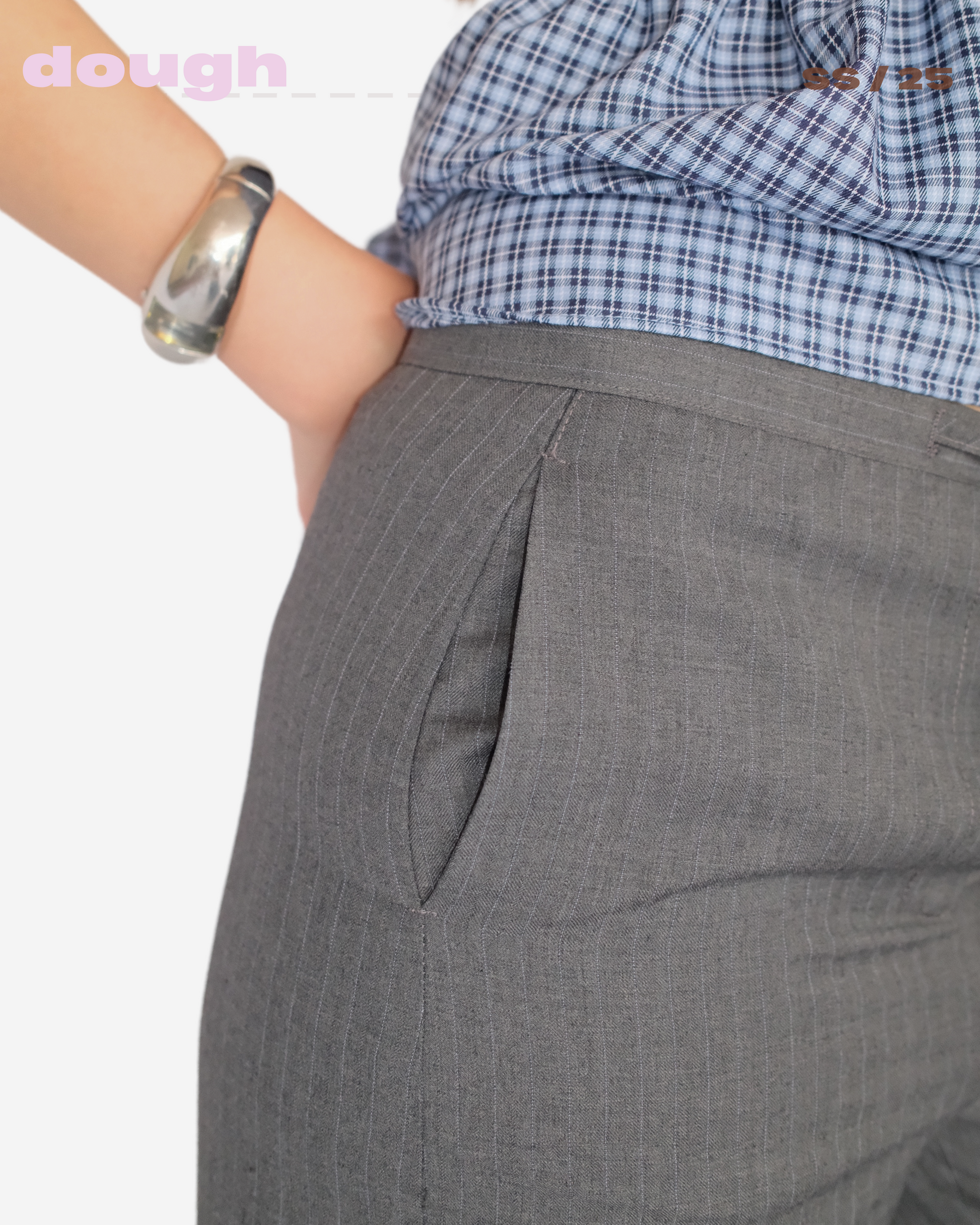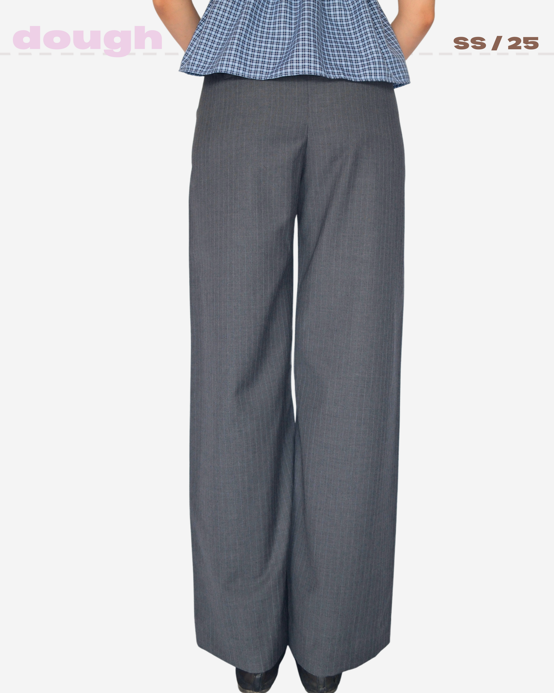 Effortlessly tailored with a relaxed vibe, these grey pinstripe drawstring pants blend polish with comfort. Designed in a soft, lightweight fabric with subtle vertical stripes, they offer a flattering silhouette while keeping things breezy and wearable. Dress them up or down with ease.