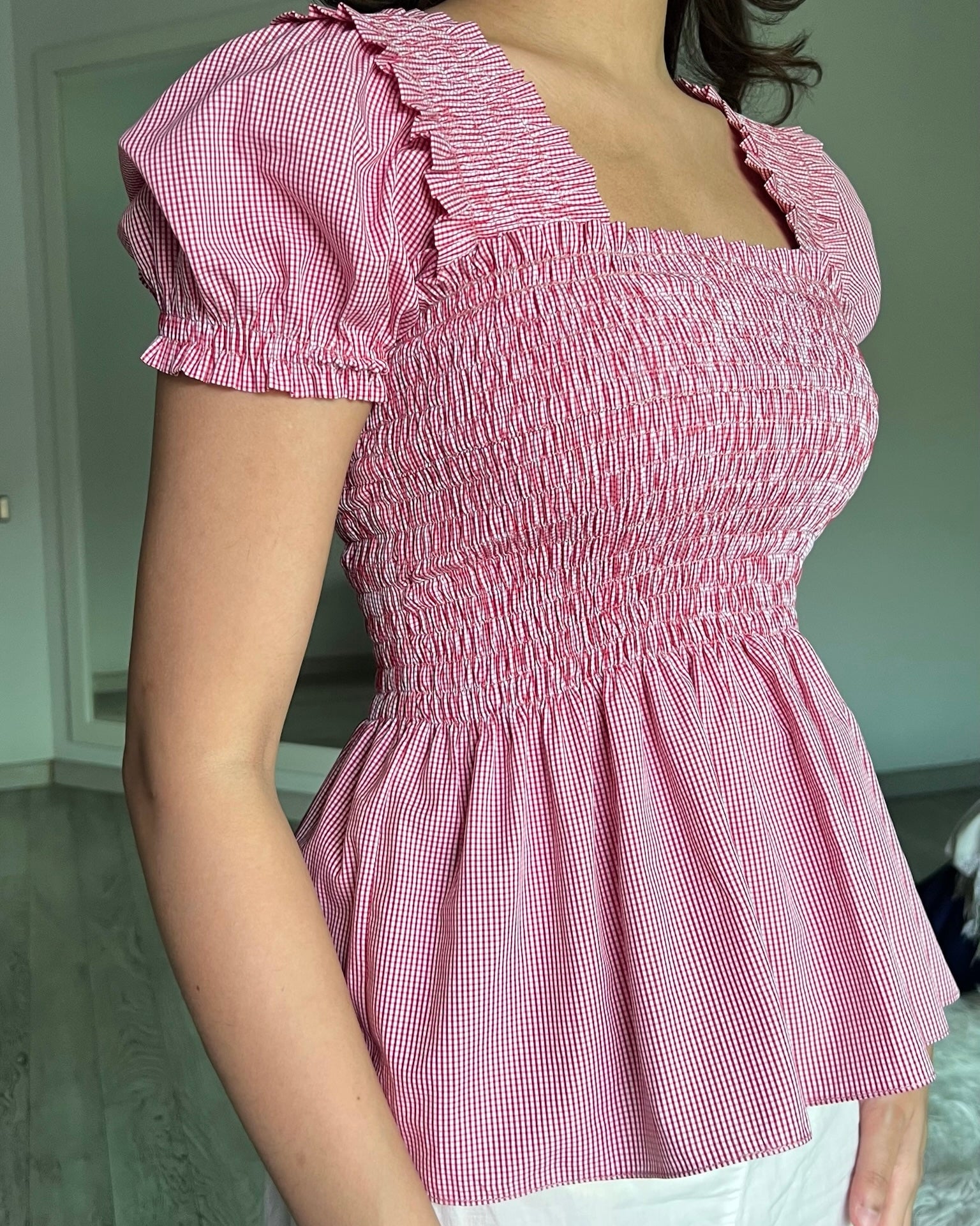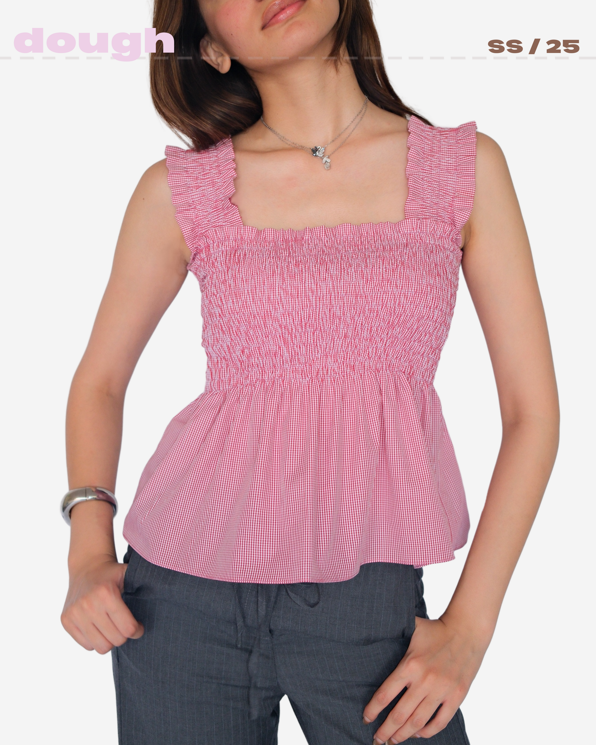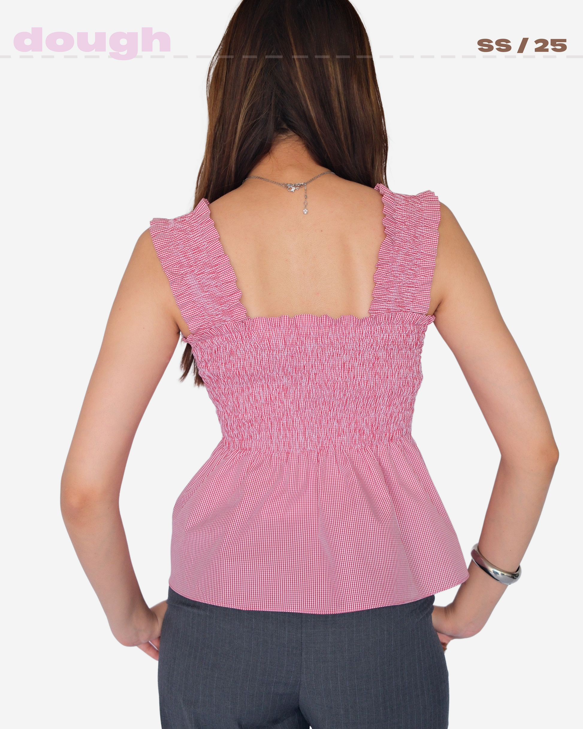 A fresh take on a summer staple, this red gingham smocked top combines playful detail with an easy, flattering fit. Designed with a stretchy smocked bodice, soft ruffled straps, and a flared hem, it offers both comfort and charm. Perfect for warm days and casual pairings.